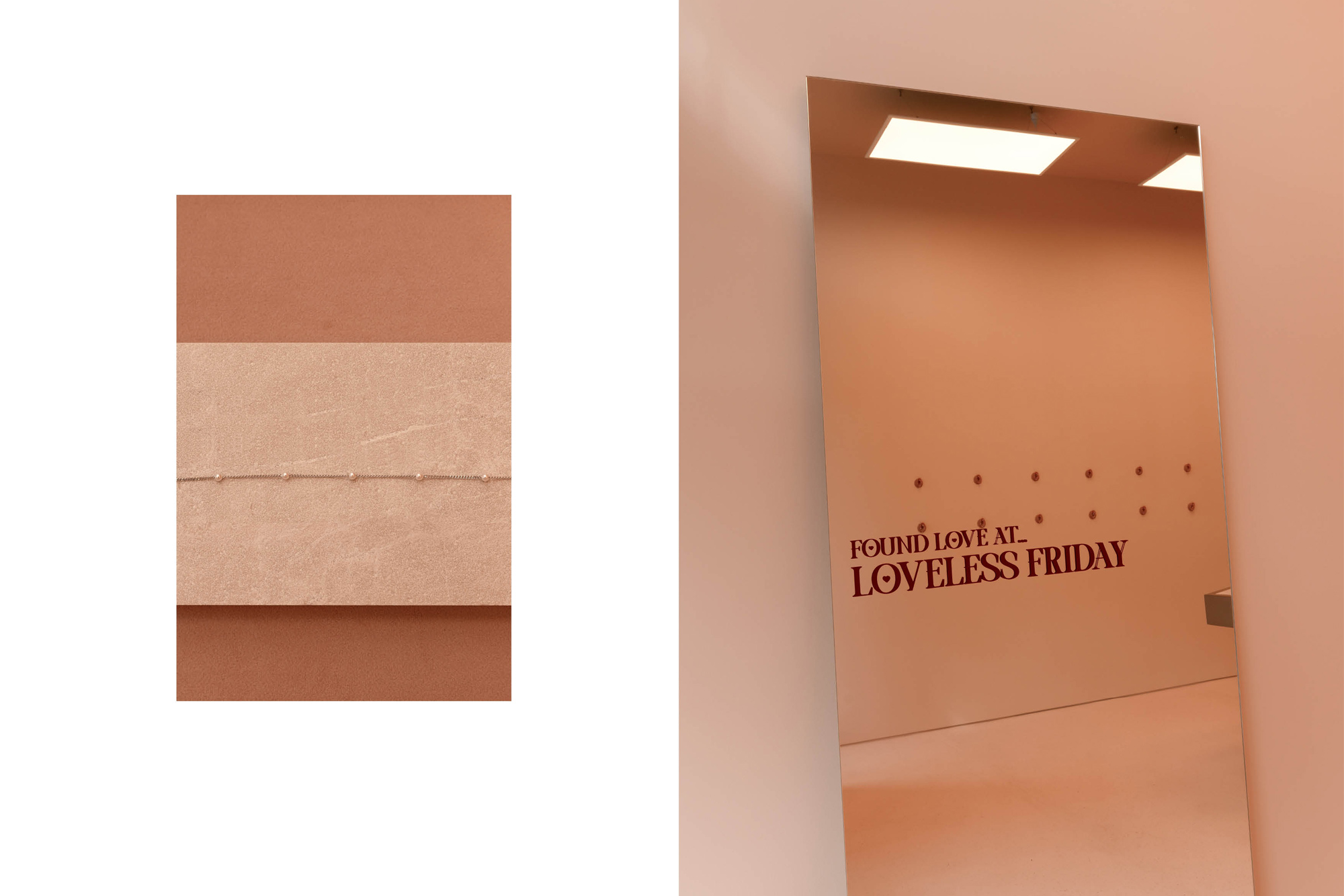 Loveless Friday’s new Ponsonby showroom reimagines what a jewellery retail space can be. With their office and dispatch hub now upstairs, the ground floor was transformed into a destination — part store, part installation — designed to stop passersby and draw them into the brand’s world. Anchored by a minimal, monotone pink palette, the space blurs the line between gallery and retail. From the oversized ear sculpture in the window to walls lined with silicone display ears, every detail invites curiosity and interaction. A central brushed aluminium and velvet table presents each piece like artwork, while blush drapes and soft zoning lead toward the in-house piercing studio.